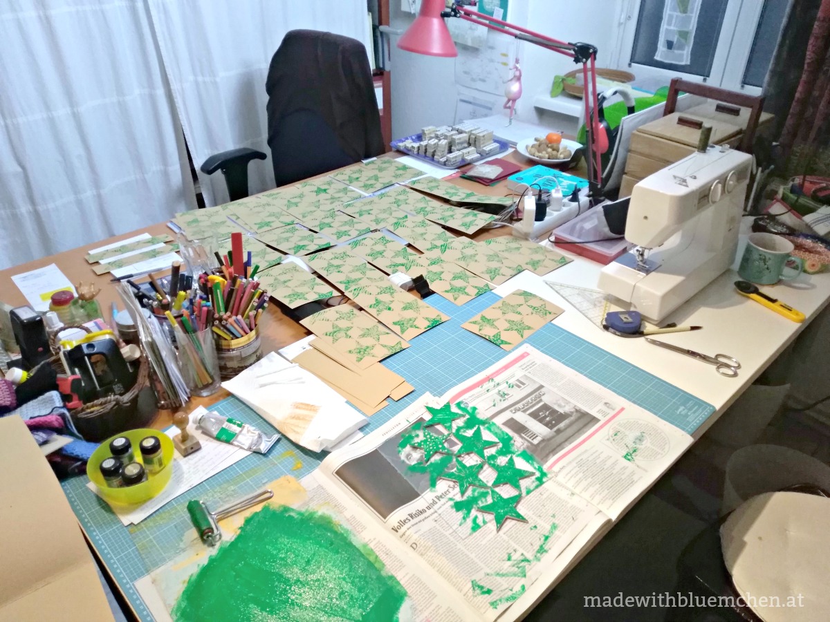 1. Liebe Katrin, sehr gerne! Bei meinen Karten wäre es eben auch nicht möglich gewesen zu radieren. Da hätte ich wahrscheinlich die halben Sterne zerstört. Für das Büchlein warte ich noch, bis alle Karten da sind, das binde ich dann Anfang Januar. Dazu habe ich schon länger ein Rezensionsexemplar von Michaela Müllers erstem Buch „Bunte Bücher“ hier liegen – zwei Fliegen mit einer Klappe sozusagen. Lernen wir uns 2020 auch mal in echt kennen? Kommst du eventuell im Mai zur Nadelwelt in Karlsruhe? Oder bei Ingrid? Wie auch immer, ich wünsch Dir erstmal eine wunderbare Weihnachtszeit! Liebe Grüße, Gabi