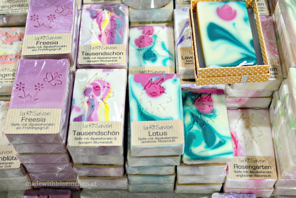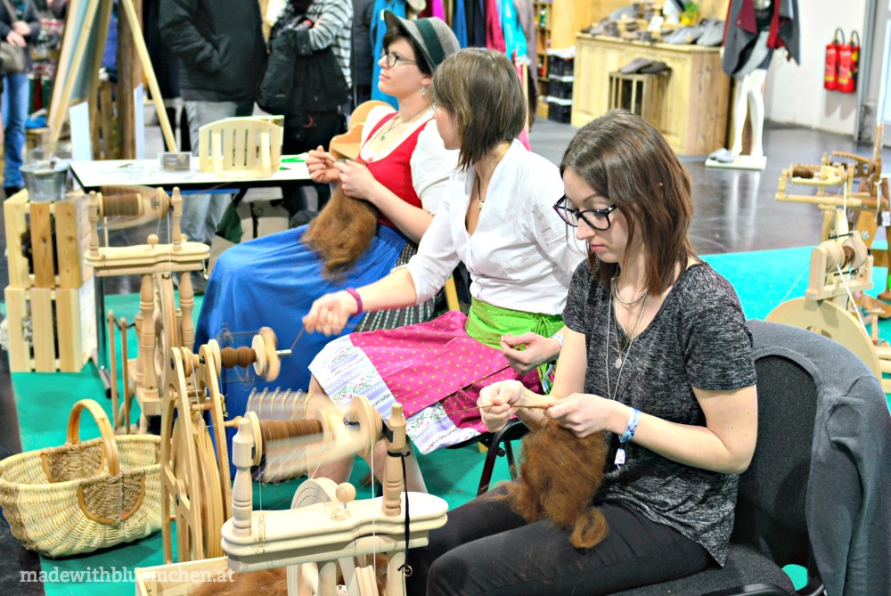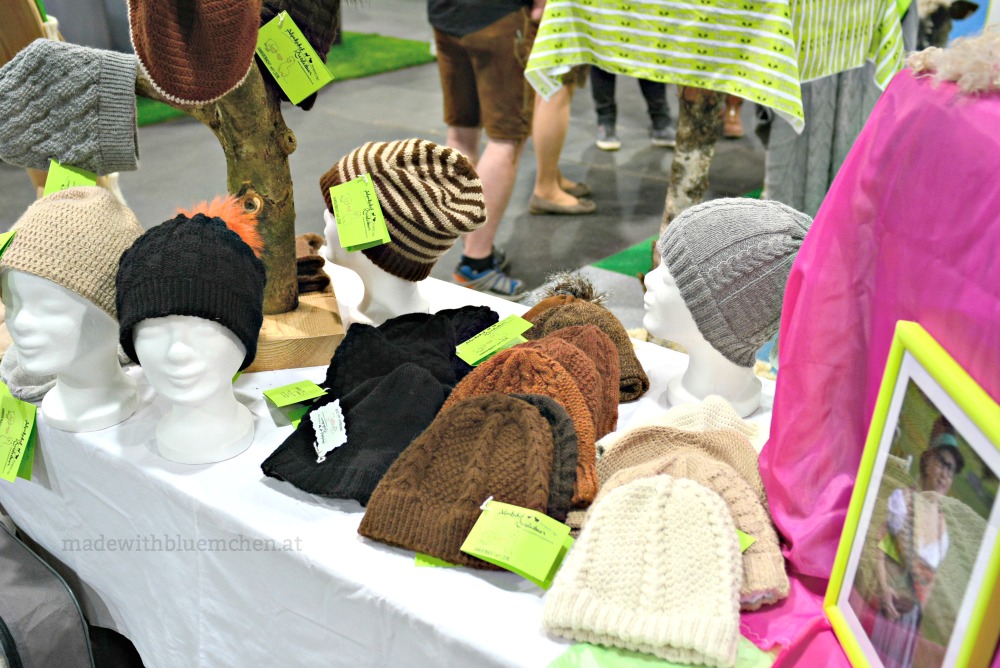 Nur an einem Stand gab es handgestrickte Mützen und Loops von einem steirischen Alpakahof zu kaufen, an einem anderen Stand wurde das Spinnen und auch Filzen vorgeführt. Ansonsten war eher wenig „handmade“ zu sehen.