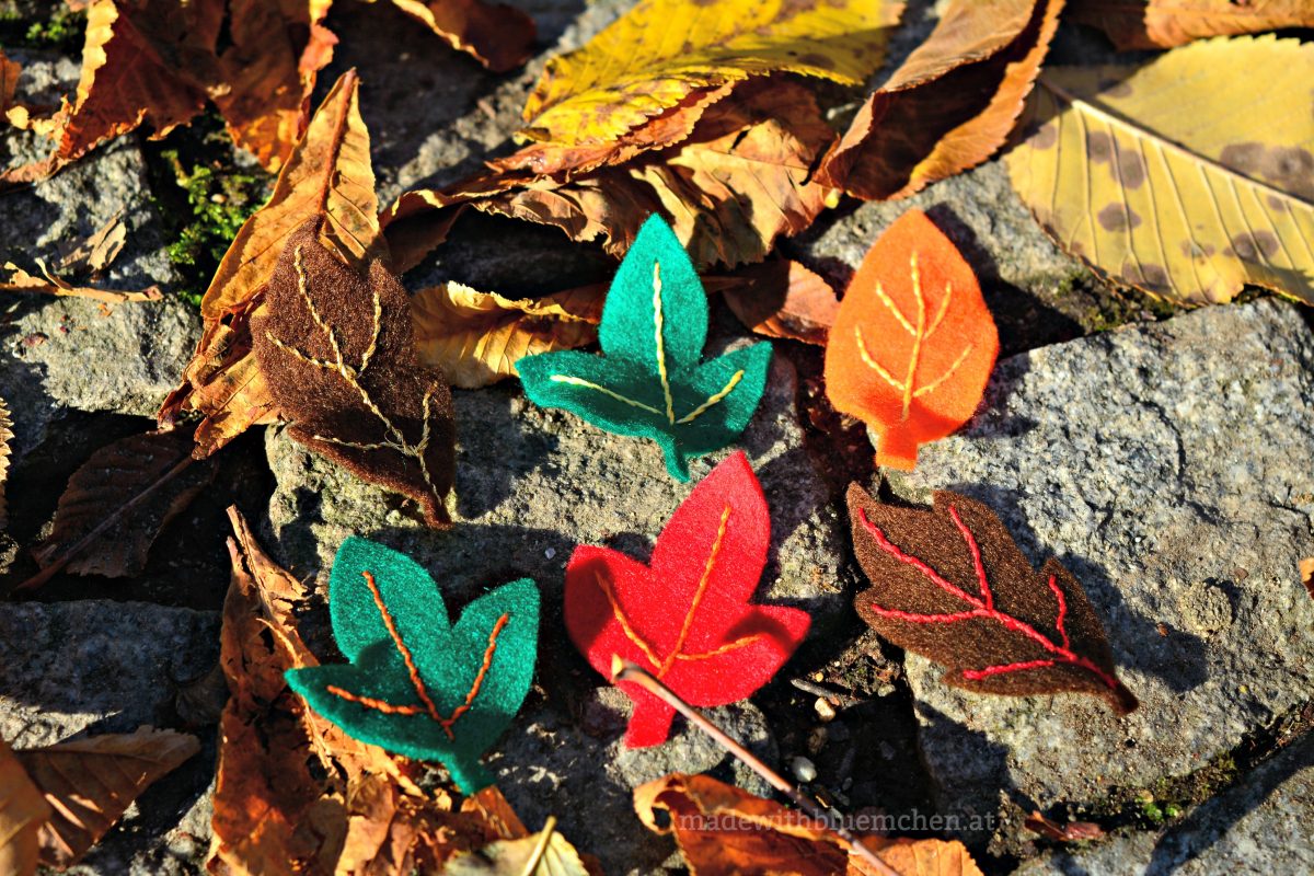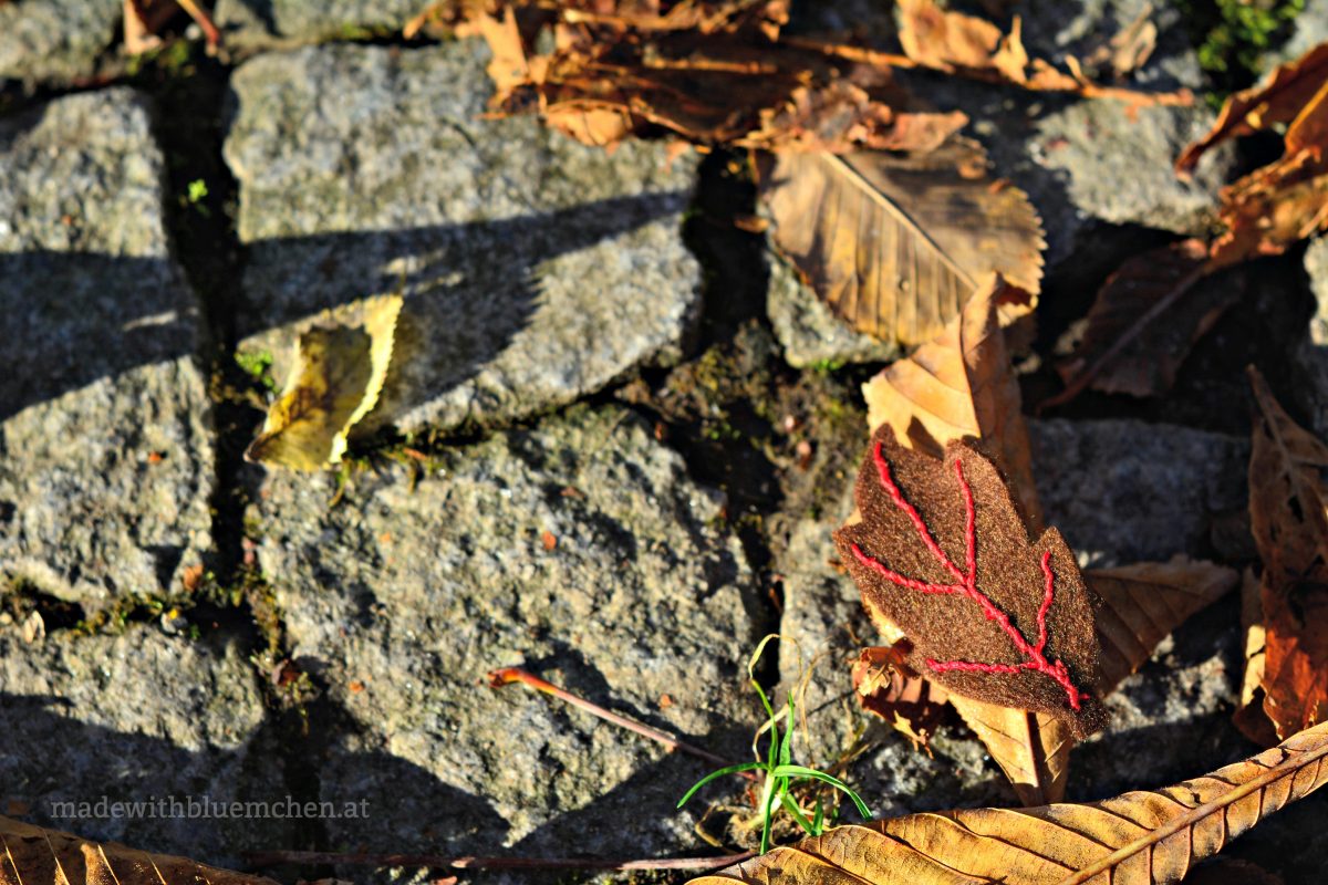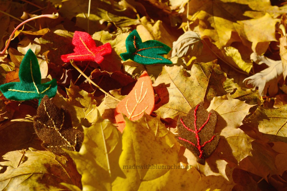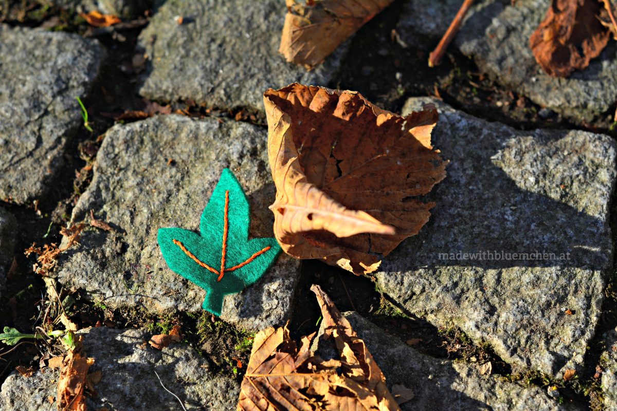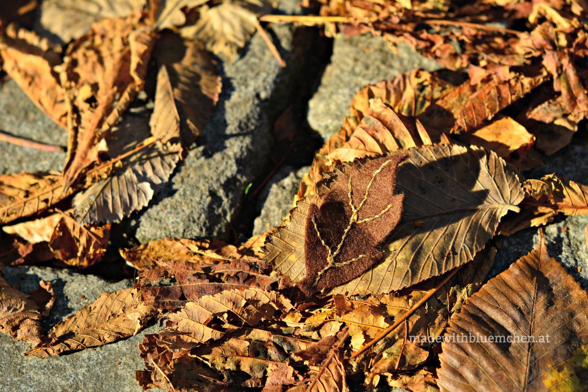 Aus Filz und Stickgarn wurden kleine, dekorative Teile. Meine Inspiration waren ein Beitrag von Kleine Viecher aus dem letzten Jahr, sowie ein Herbstspaziergang mit der Tochter.