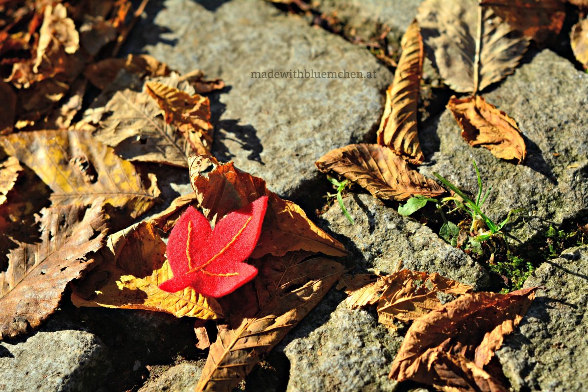 Die ursprüngliche Idee war, die Blätter mit kleinen Magneten versehen als Herbstdeko am Kühlschrank zu befestigen, aber natürlich kann man sie auch mit einer Nadel als Brosche tragen, sie applizieren, auf ein Tischtuch nähen oder auf einer Haarspange befestigen. Meine Farben, meine Herbstfarben!