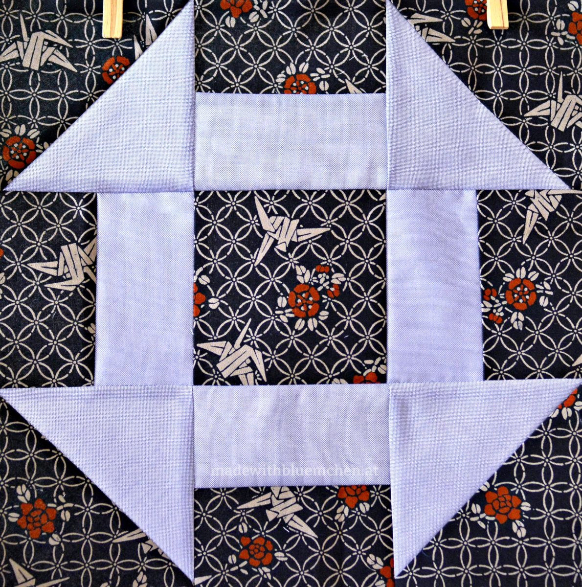 Schnitt/ Anleitung: Rolling Stone bei Dorthe lalala-Patchwork, Churn Dash bei Nadra ellisandhiggs.