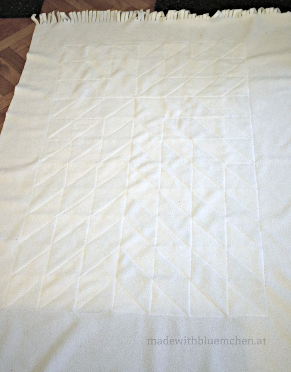 Die Decke ist wunderschön geworden. Hab ich das richtig verstanden? -> die Decke besteht nur aus der Fleecedecke und darauf ist das Top genäht? Und das draufnähen vom Top ist gleichzeitig das gequiltete? Wäre ja echt genial und mal etwas anderes.