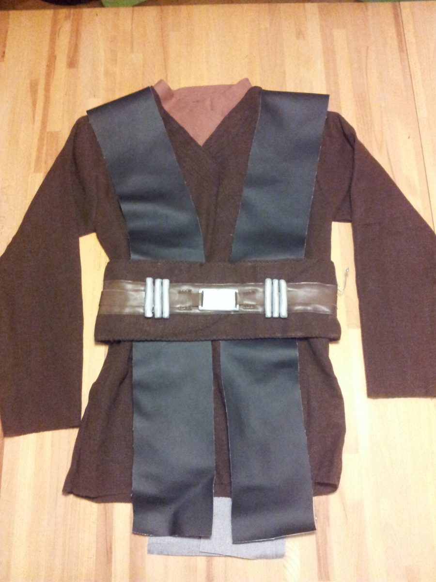 Schwert: ein gekauftes Lichtschwert, für Anakin in blau. Das Licht war allerdings im Vergleich zum grünen Lichtschwert der Tochter (Yoda, siehe unten) viel zu matt, also hat der Göttergatte andere, hellere blaue LEDs hineinlöten müssen…