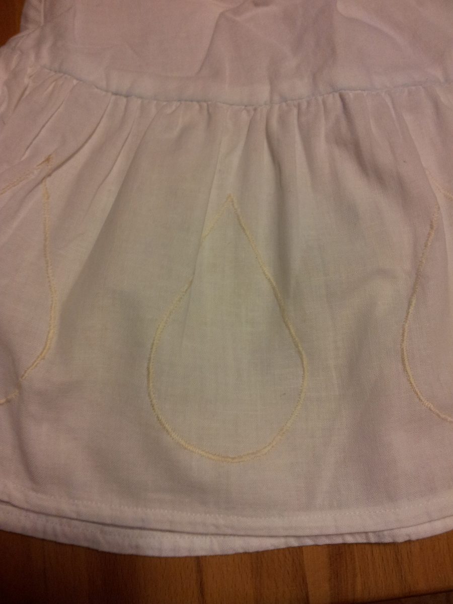 Kleid: aus weißem Baumwollstoff genäht, Schnitt von einem ihr passenden Kleid abgenommen