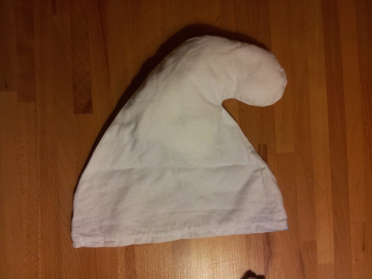 Mütze: aus weißem Baumwollstoff, mit Watte ausgestopft