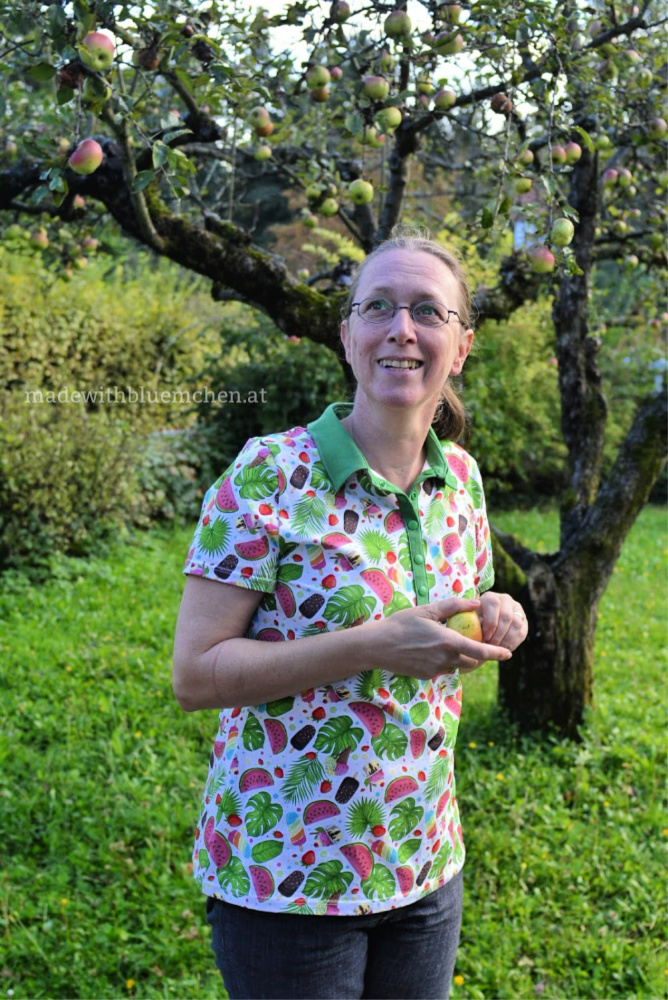 deine beiden Poloshirts sehen wirklich wunderbar aus! Besonders mag ich das Bild mit dem Melonenshirt vor dem eher heimische Früchte tragenden Obstbäumchen;).