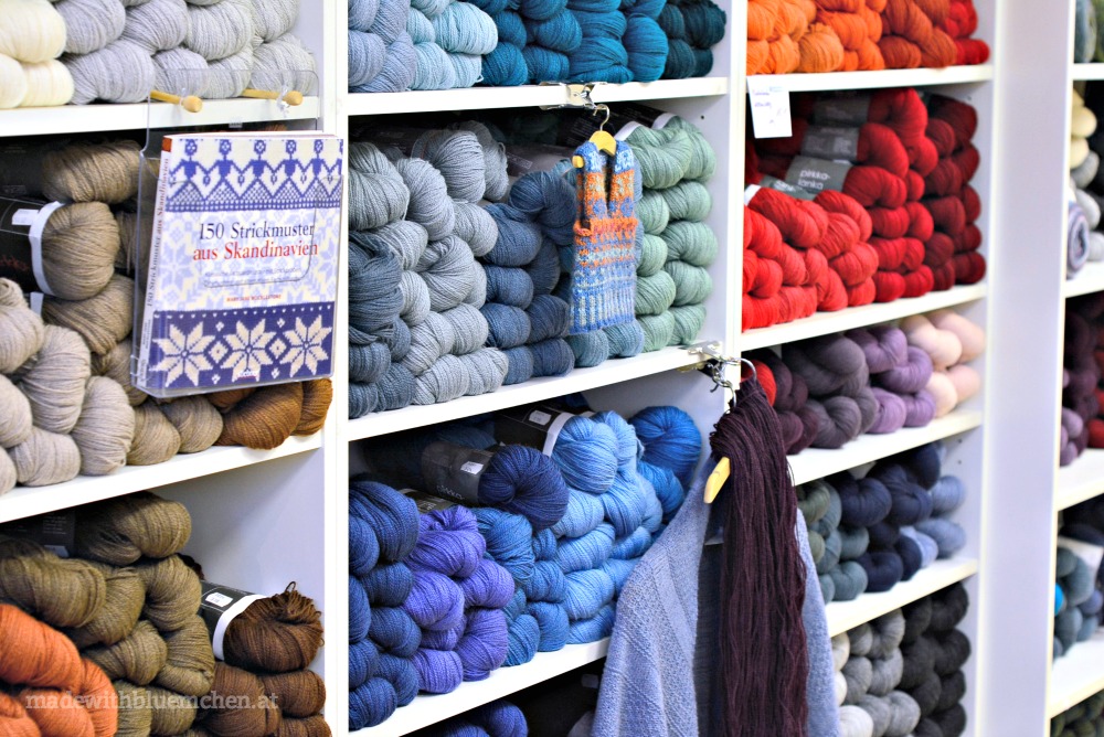 Aber der Name des Ladens ist mir im Gedächtnis geblieben, die Idee hat mich nicht losgelassen. Und wenn’s schon am Weg liegt und noch dazu offen hat, schaue ich doch glatt dort vorbei. Nur zum Schauen, versteht sich. Denn Wolle und Projekte habe ich ja eigentlich genug… 😉