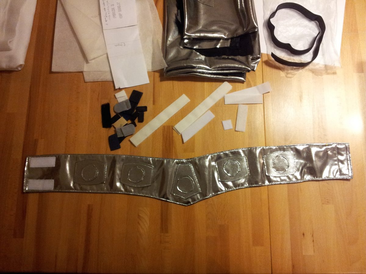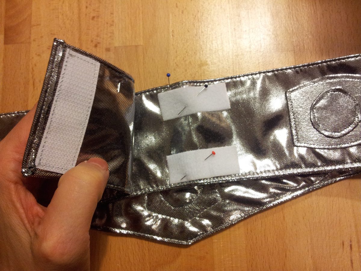 Dann die Teile auf den Gürtel aufgenäht, noch einmal die Länge des Gürtels am Kind getestet, einen Klettverschluss drauf und fertig.