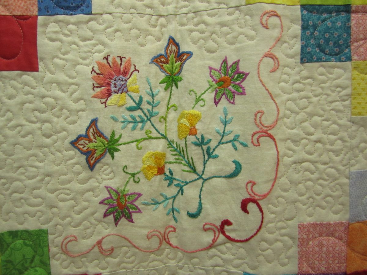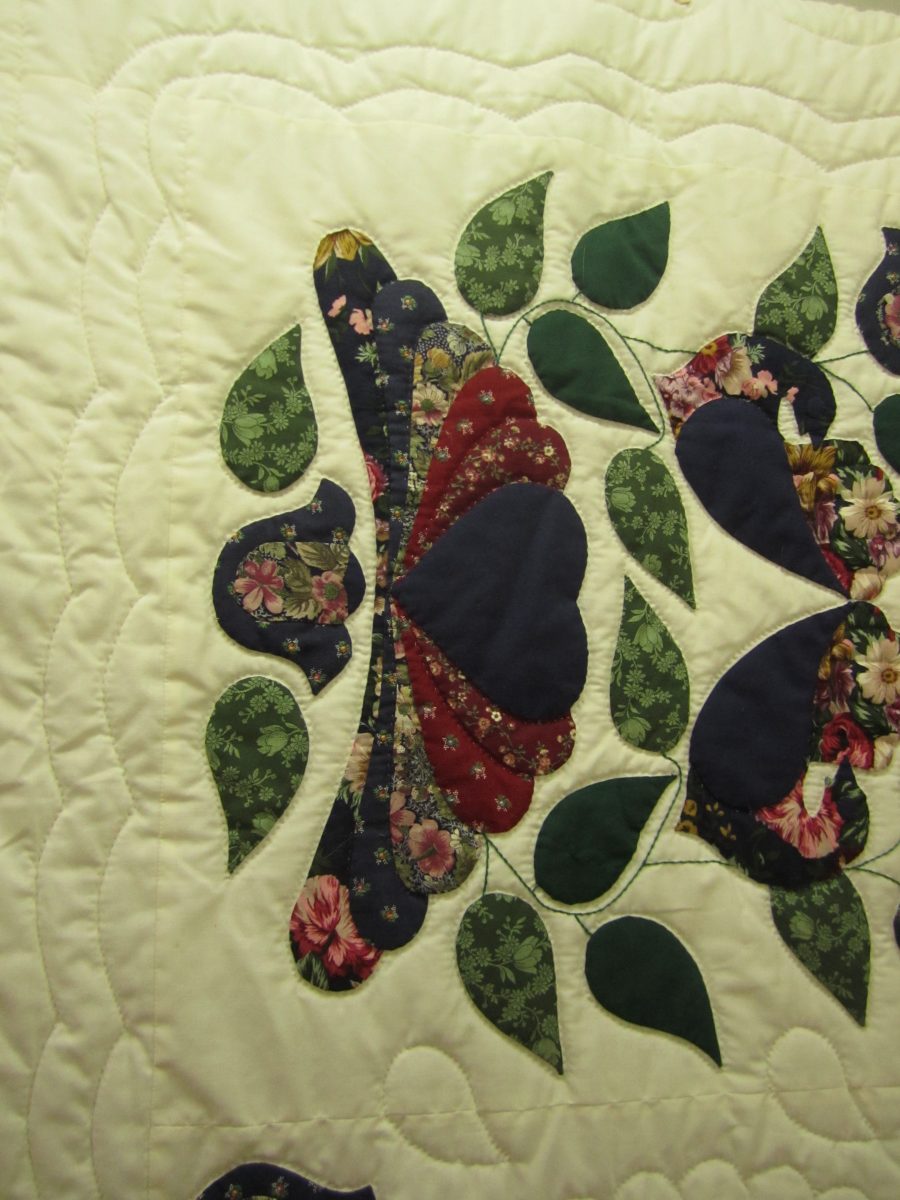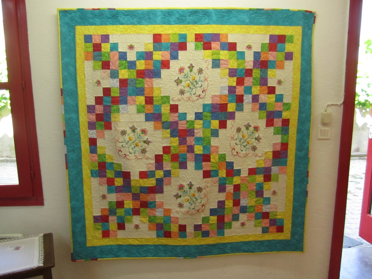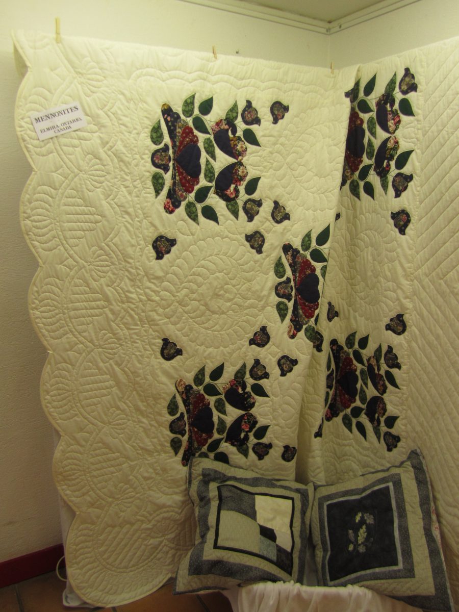 Der Patchwork-Club von Mirabeau stellte eigene Werke und welche aus den Sammlungen der beteiligten Frauen aus. Besonders beeindruckt hat mich der riesengroße Mennonitenquilt aus Kanada, der zur Gänze mit der Hand gequiltet ist.