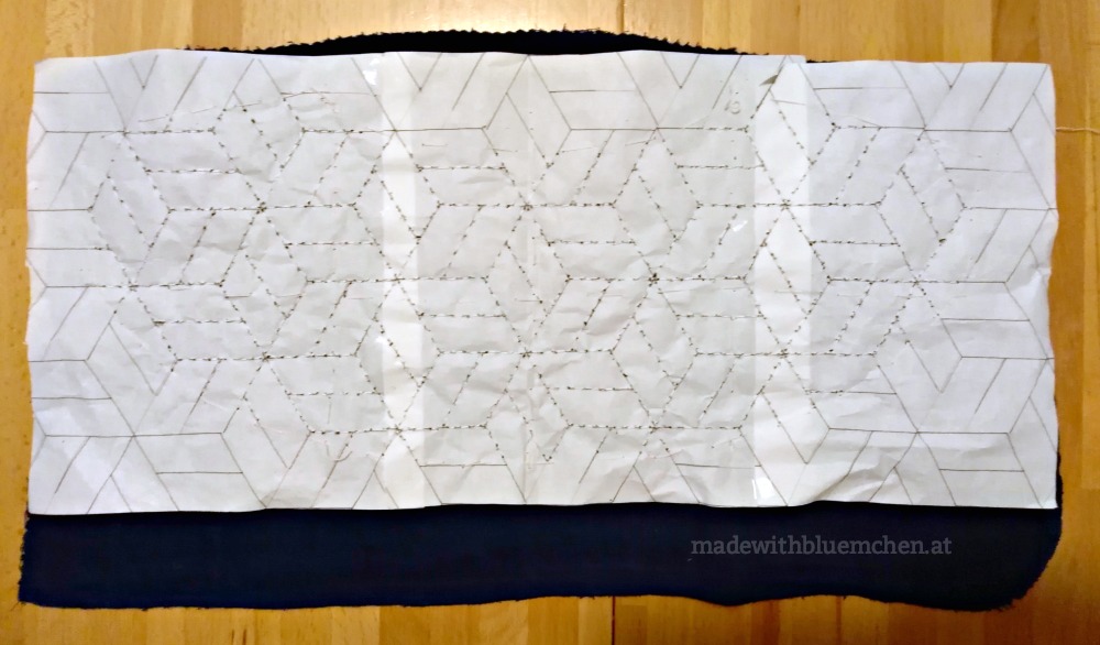 Das Sashiko-Muster habe ich mit Zirkel und Geodreieck selbst in einer passenden Größe gezeichnet, gescannt und am Computer nachbearbeitet.