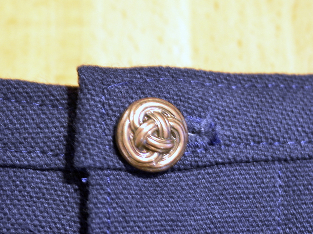 * Knopfleiste mit elastischer Vlieseline verstärkt gegen Ausreißen und richtige Knöpfe anstelle des vorgeschlagenen Druckknopfbandes eingenäht