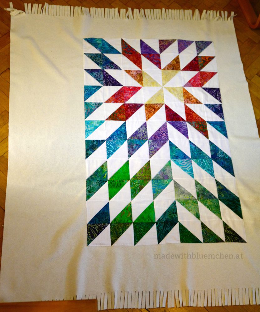 Und viele Anregungen und Ideen habe ich auf meinem Pinterest-Board Stoffspielereien: Sterne gesammelt, wo ich später auch die heutigen Beiträge zum Thema verlinken werde: Zum Quilten, Häkeln, Falten, Nähen, Basteln und Stricken. Sehr begeistert bin ich immer wieder von den tollen, leuchtenden Fenstersternen von deschdanja, von Wonky Stars in allen möglichen Ausführungen wie hier bei fresh lemons quilt, und vom Lone Star. Das sind die aufwändigeren Sachen.