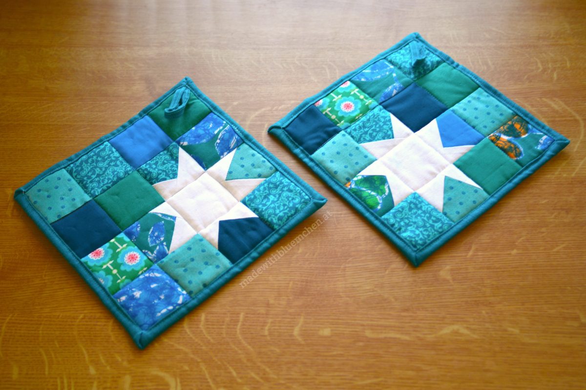 Sehr schön anzuschauen sind all die Sterne, die du gesammelt hast. Die HSTs hast du ja sehr schön zusammengestellt. Und die Wonky-Sterne auf den Topflappen find ich auch immer super.