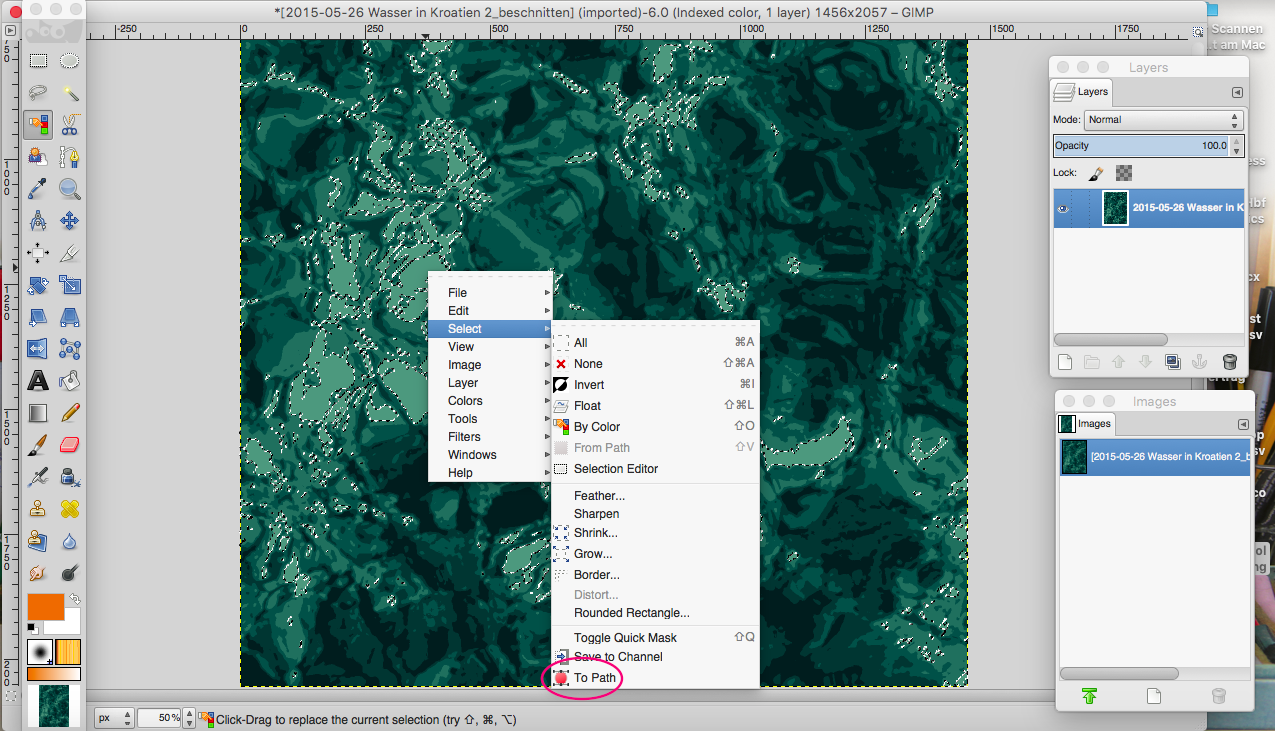 Und das habe ich dann – unterstützt durch zahlreiche auf Google gefundene Artikel – mit Gimp ausprobiert, einem kostenlosen Open Source Grafikprogramm.