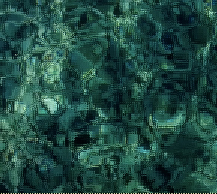 Aber besser fand ich es, den Stoff irgendwie zu schichten, wie eine Landkarte mit Höhenlinien, um die organische Struktur des Bildes zu erhalten. Auf Colossal habe ich einmal Tische aus Marmor und Harz gesehen, die die Tiefenlinien in einer Lagune nachahmen. So ein räumliches Gefühl wollte ich erreichen.