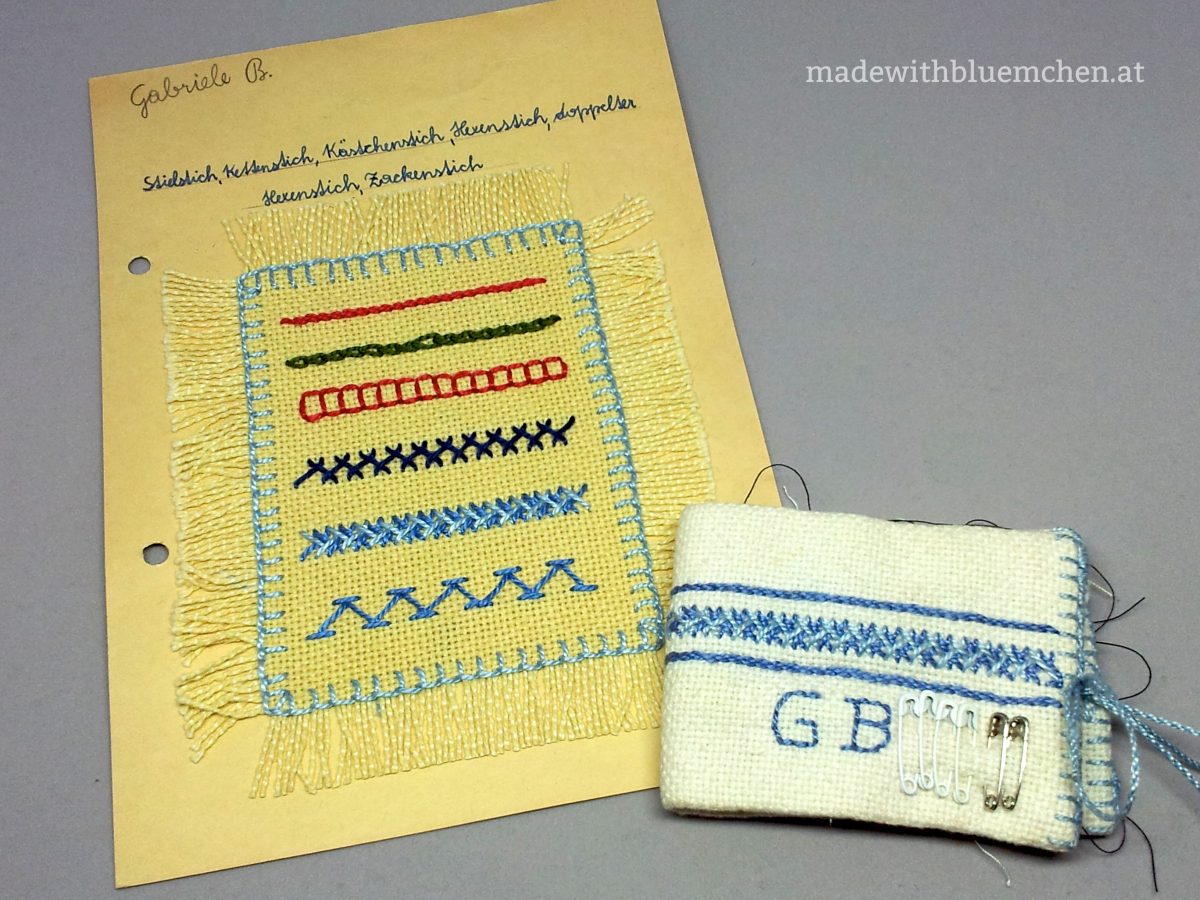 Ich habe dann einerseits viel Zeit damit verbracht, verschiedene Farbkombinationen für das Lesezeichen auszuprobieren, andererseits habe ich den Aufwand des vorab noch nötigen Schrittes unterschätzt: Die grundlegendsten Stickstiche anhand von Video-Tutorials auf Youtube zu üben. Danach blieb kaum noch Zeit, wirklich am Lesezeichen zu arbeiten.